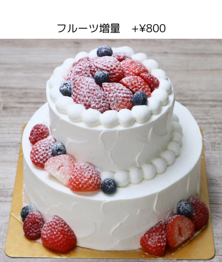 フルーツの増量をご希望の場合は+¥1,000となります。装飾の位置やバランスはご指定頂けません。